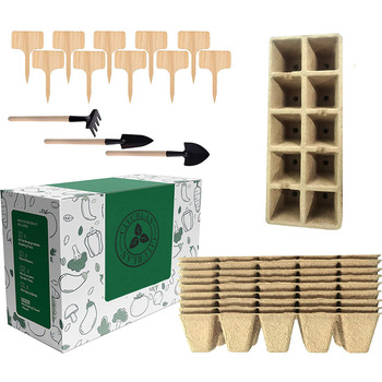 Vassoio biodegradabile piantina Kit di avviamento con strumenti di bambù vassoi naturali con legno Set di attrezzi da giardino