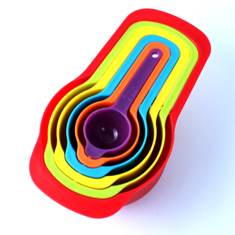 Set di 6 misurini e cucchiai di plastica-facile da pulire-lavabile in lavastoviglie, colore casuale arcobaleno