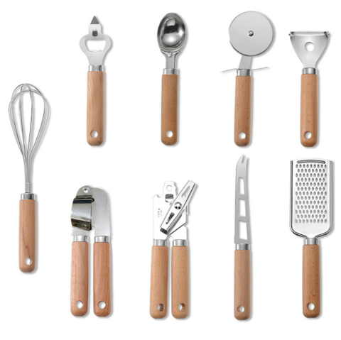 क्रिएटिव रसोई गैजेट्स 9 टुकड़ा सेट लकड़ी संभाल छोटे बरतन स्टेनलेस स्टील के रसोई के बर्तन संयोजन