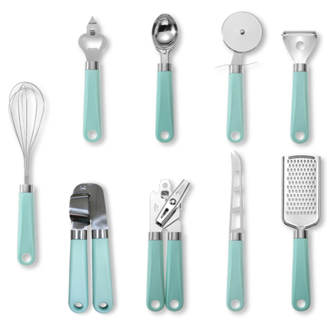 9-टुकड़ा स्टेनलेस स्टील के रसोई के बर्तन सेट, हल्के प्लास्टिक धारक संभालती है, गैर छड़ी Cookware गैजेट्स और उपकरण किट